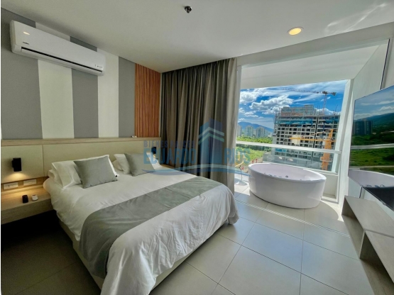 Venta de apartamento en el exclusivo sector de Irotama a solo unos pasos de la playa, esta apartasuite tipo loft cuanta con un solo espacio de una habitación con balcón y jacuzzi, cocina abierta y un baño completo con ducha. Esta propiedad está ubicada en un proyecto que se realizó con vocación turística lo cual lo permite para el alquiler de estadías cortas por plataformas digitales, el edificio cuenta con áreas sociales muy completas como jacuzzi, piscinas, asoleadoras, gimnasio, sauna, turco, terraza con mirador, lobby tipo hotel y mucho más.